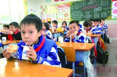 最爱课间餐 每个班级派出2个同学去食堂拿牛奶面包 ▼