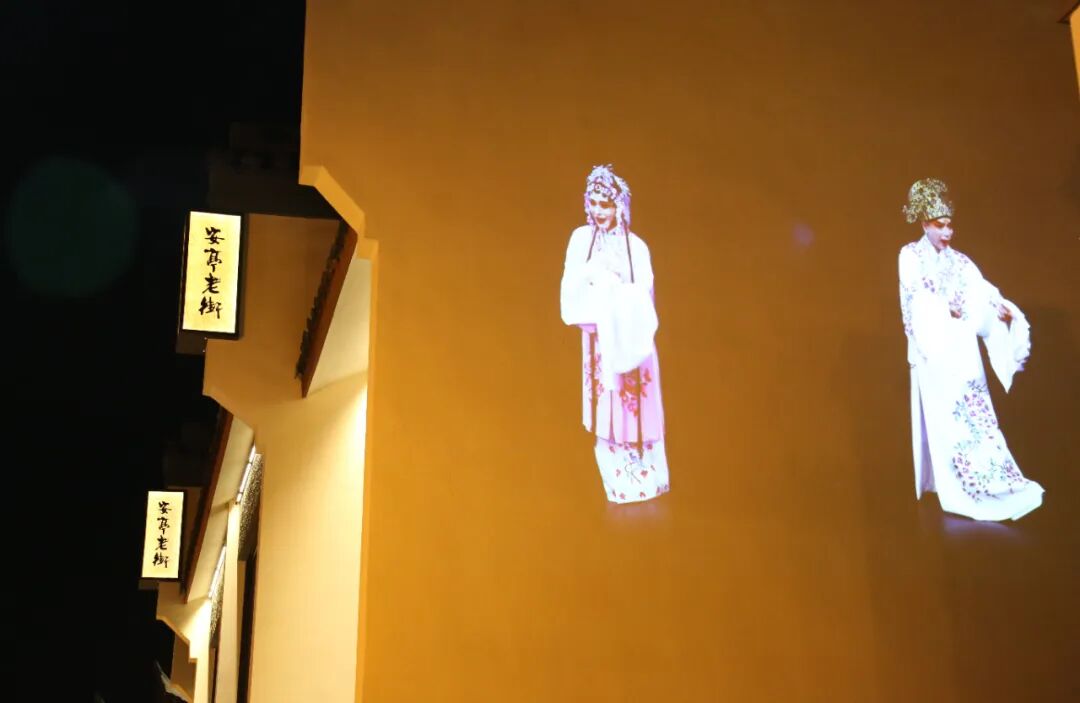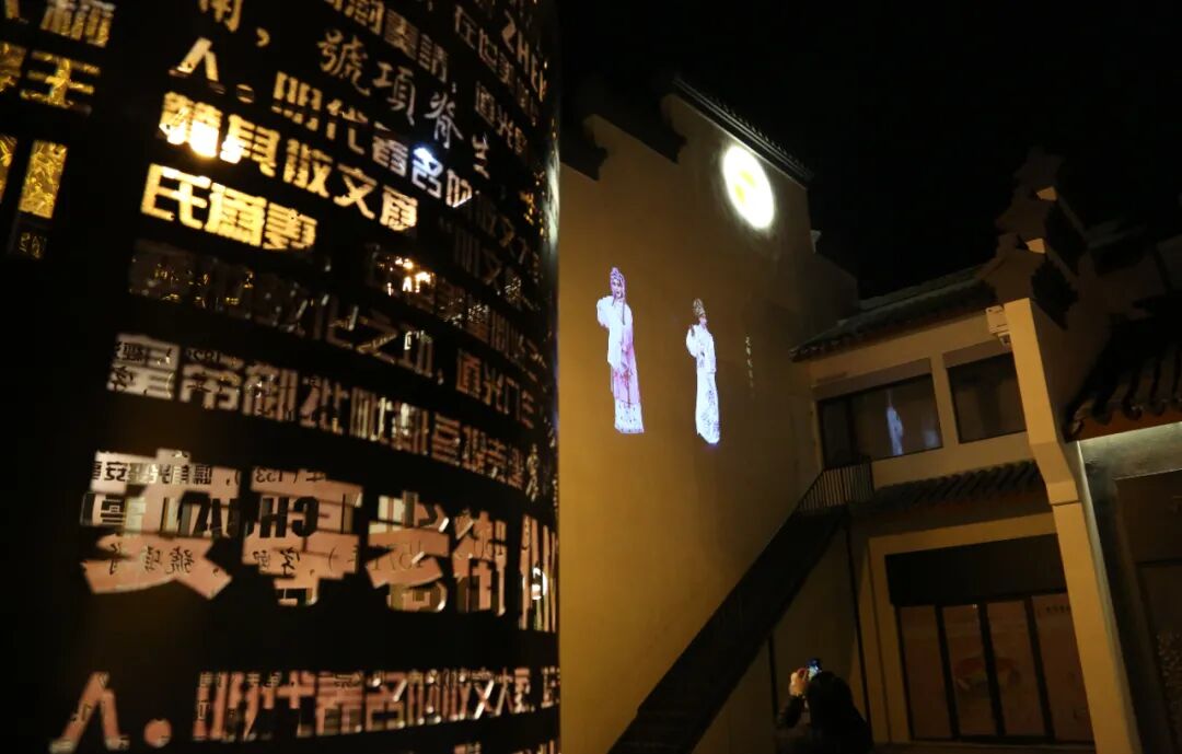 据了解,马头墙上的戏曲表演其实是通过高清投影实现的。目前,在夜间会循环播放《牡丹亭·惊梦》《牡丹亭·幽媾》《长生殿·小宴》三折。