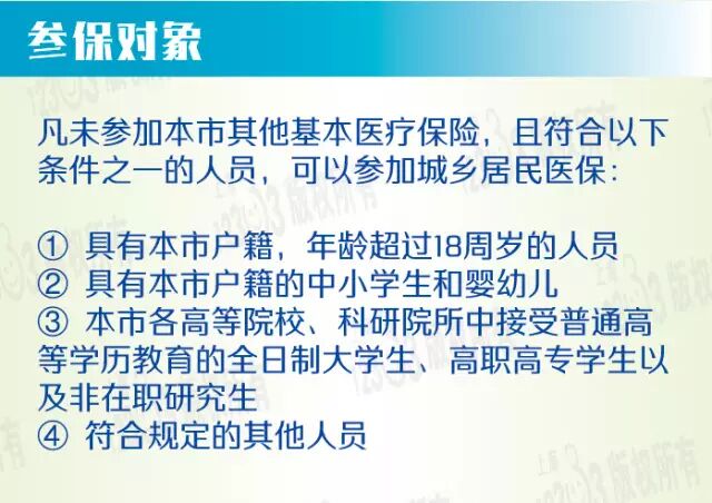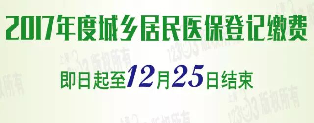 2017年度城乡居民医保参保登记 受理工作已开始本市2017年度城乡居民医保参保登记受理工作已开始,将于12月25日结束。参保人员按照年度缴费,享受2017年度(1月1日至12月31日)城乡居民医保待遇。2016年本市实现了城乡居民医保制度整合,广大参保人员特别是农村居民获得了切实的保障和实惠。为了确保城乡居民医保制度可持续发展,本市对2017年度城乡居民医保政策作了适当调整: 1、继续加大政府投入力度,提高了城乡居民医保的总体筹资标准,各级财政投入增长约14个百分点。同时,充分考虑居民的承受能力,个人缴费标准适当提高。为确保农村居民应保尽保,各区政府及村集体经济继续对农村居民个人缴费给予适当补贴。 2、继续对困难人群参保进行帮扶补助,对城乡居民中的低保对象、重残人员以及高龄老人等,政府相关部门继续对他们的个人缴费部分给予减免。参保对象 2017年度个人缴费标