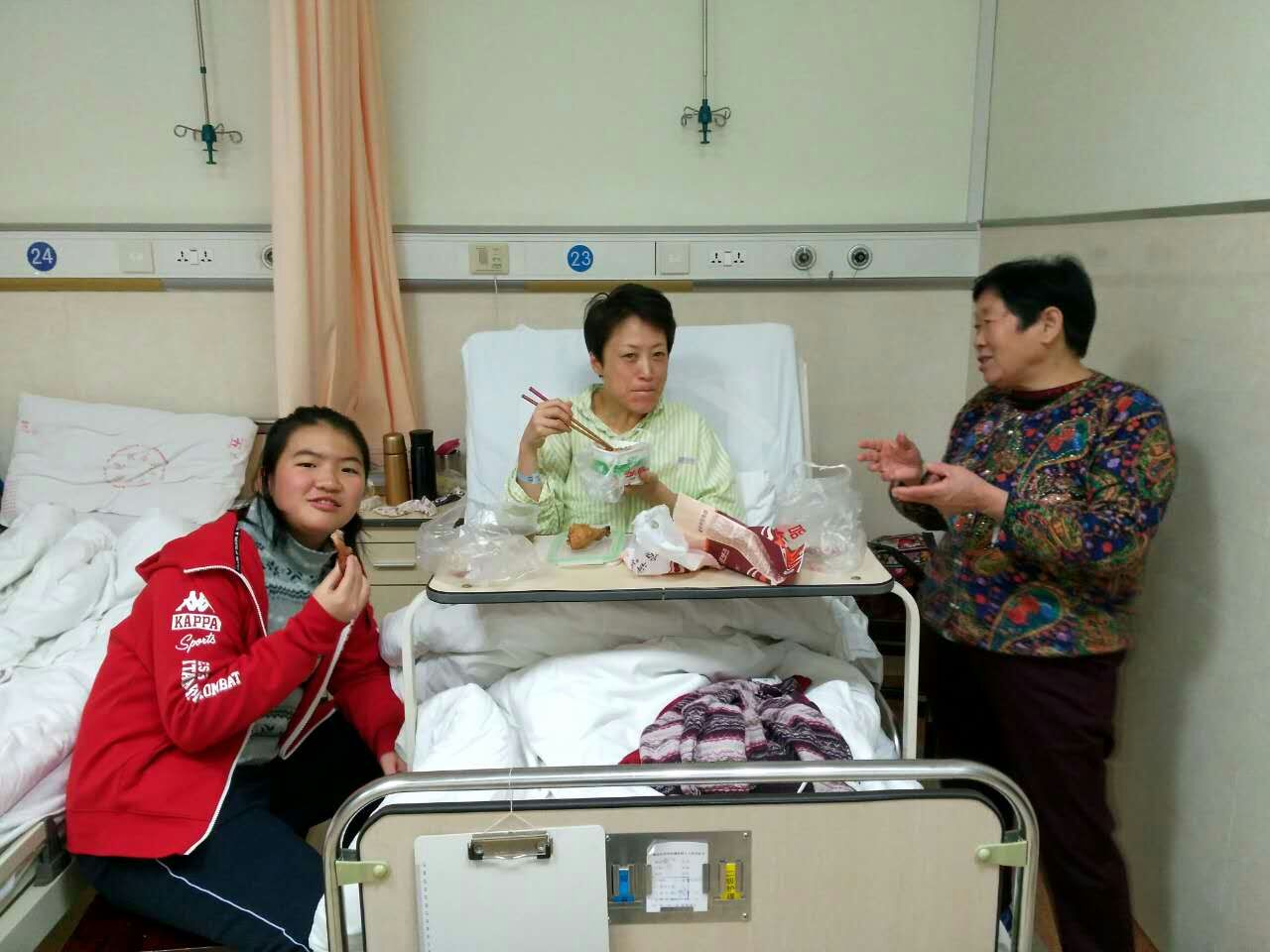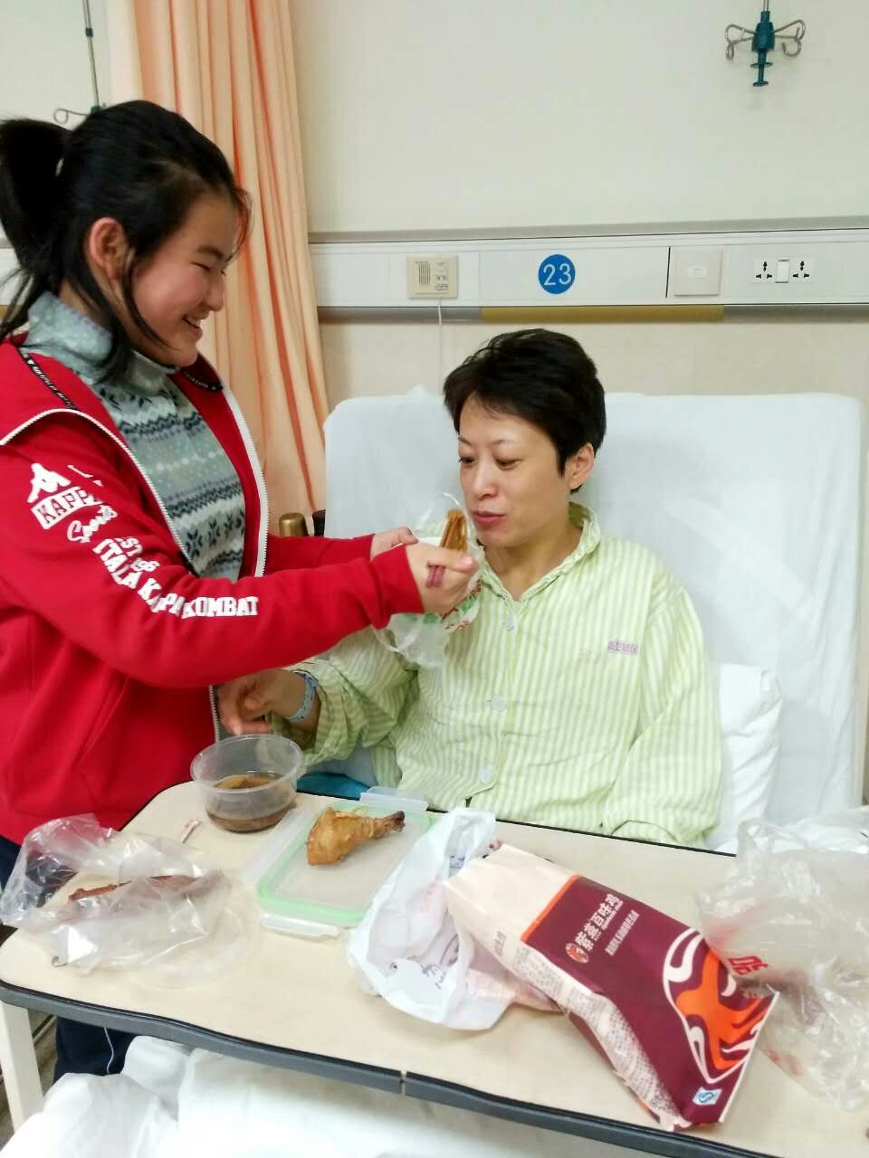| 妈妈住院开刀,作为你最亲爱的女儿,我期中考试一结束就让爸爸开车赶到医院,看到妈妈憔悴的面孔让我很心疼,我帮着去打饭,一口一口喂你吃,看到妈妈脸上洋溢着幸福的微笑,我相信伤口的疼痛会减轻很多。妈妈,一定要快点好起来! |