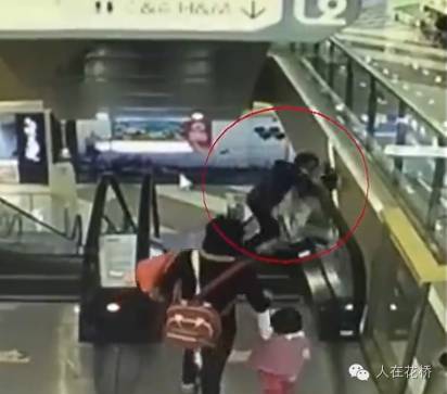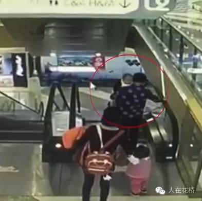 现场监控:奶奶抱男婴坐扶梯不慎失控脱手 致男婴坠亡