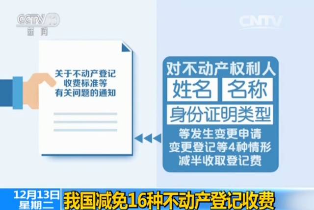 | 国家发展改革委12日表示,对16种不动产登记实行收费减免优惠。政策实施后,全国每年可减轻不动产登记申请人负担约5亿元。