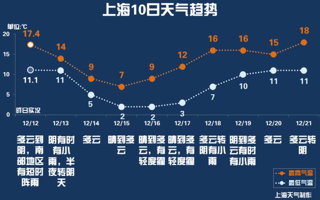 今年双12亲亲节最大折扣原来出现在12·13 气温打折促销,折后全城免费发送 不管你要不要,只要接受的份儿 既然木已成舟,倒不如坦然 毕竟不是只冷你一个人,实在冷,就找人抱抱 双11没脱单的就蹲下抱抱自己 明天可是拥抱情人节哟 雨水先打头阵 因风小湿度大,昨夜今晨大雾再度笼罩申城(上海中心气象台04时47分发布了大雾黄色预警信号,并于07时58分解除),加上今天的阴雨天,今天早晨,小编起床的瞬间,天色比平时更暗,有种闹钟调错了的错觉。 上班路上,淅淅沥沥的小雨,其实是来势汹汹的冷空气和顽强抵抗的暖湿空气互相博弈带来的,这场实力悬殊的战斗结果想必大家都猜到了吧? 寒潮蓝色预警,降温8~10℃ 降温是重头戏! 本市今天白天气温在13~14℃之间,受冷空气影响,今天夜里起气温将明显下降,15~16日早晨最低气温市区2~3℃,郊区零度到1℃(局部地区有薄冰);今天到15日平均气温降幅将达6~8℃,最低气温降幅也将达到8~10℃。上海中心气象台已于今天11时发布寒潮蓝色预警信号。